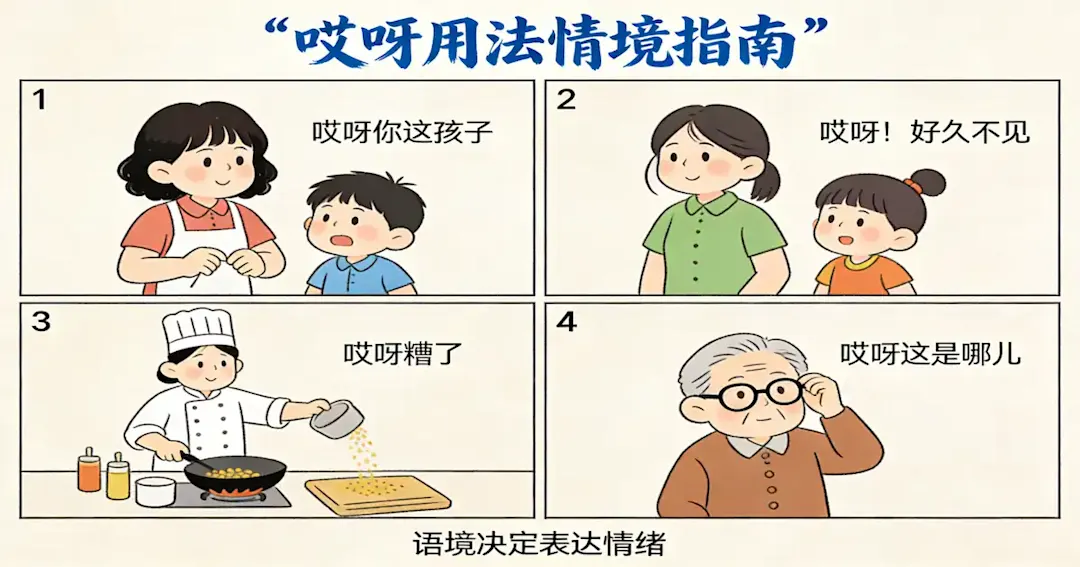 Many resources show overlap, but a learner-friendly split is: aiya = “oops/come on,” aiyo = “ouch/oh no.” You’ll also see differences by region and by family dialect background.