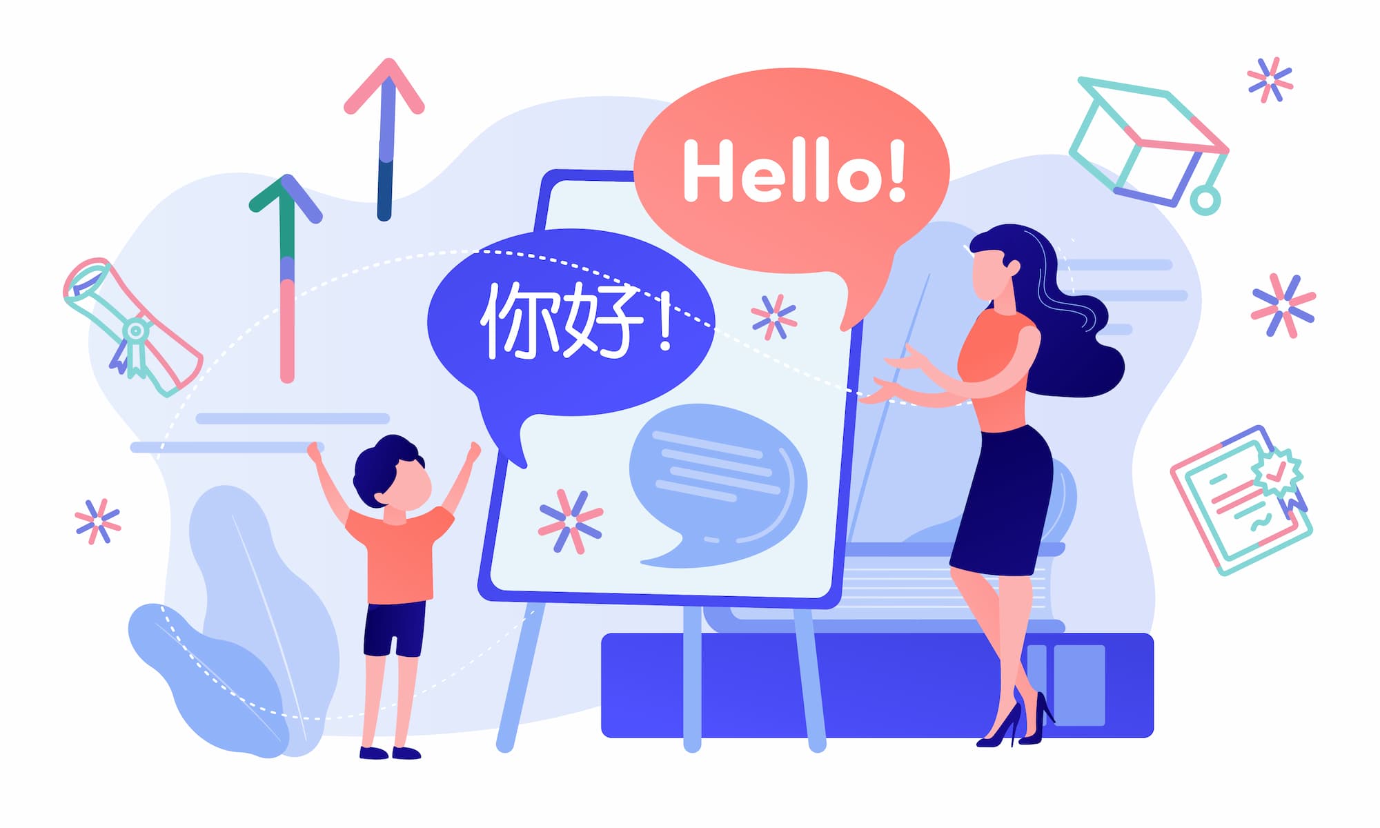 Kursus Bahasa MandarinKursus Bahasa InggrisGuru-guru kami sangat bersemangat dalam pembelajaran bahasa. Mereka semua adalah para profesional bersertifikat dengan pengalaman mengajar di kelas selama bertahun-tahun. Mereka tahu bagaimana membuat pembelajaran bahasa menjadi menyenangkan bagi anak-anak.