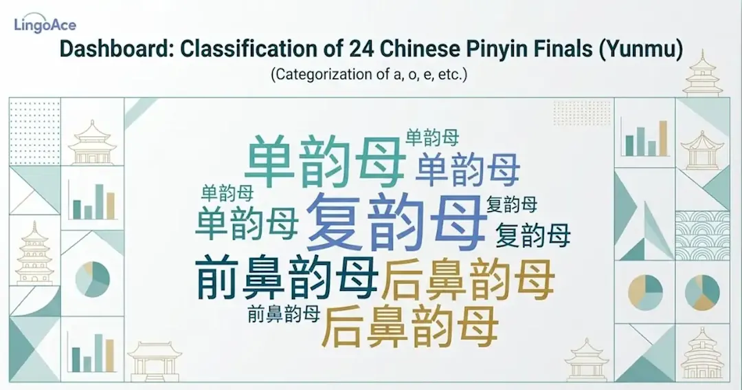 常见整理方式里,汉语拼音有 24 个韵母,通常会分成单韵母、复韵母和鼻韵母来学习。相关韵母解析页也采用了这种结构。